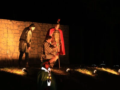 Auf der Naturbühne erwartete die Gäste anschließend das Martinsspiel. In diesem stimmungsvollen Rahmen wurde die Geschichte des heiligen Martin eindrucksvoll erzählt und dargestellt – ein Moment, der Kinder wie Erwachsene traditionell gleichermaßen berührt. Die Botschaft der Nächstenliebe und des Teilens stand dabei wie immer im Mittelpunkt.Im Anschluss öffnete der Martinsmarkt seine Pforten und lud zum gemütlichen Verweilen ein. An liebevoll gestalteten Ständen konnten Besucherinnen und Besucher kreative Handarbeiten entdecken, Geschenkideen für die Adventszeit erstehen oder einfach das besondere Flair genießen. Auch für das leibliche Wohl war bestens gesorgt: Ob herzhafte Speisen oder süße Kleinigkeiten – für jeden Geschmack war etwas dabei.