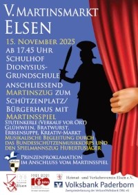 Mit beinahe frühlingshaften Temperaturen und trockener Witterung zeigte sich das Novemberwetter in Elsen von seiner besonders freundlichen Seite – fast perfekte Bedingungen für den diesjährigen Martinsumzug und den stimmungsvollen Martinsmarkt. Schon früh am Abend füllte sich der Schulhof der Dionysiusgrundschule, wo der Laternenumzug traditionell seinen Anfang nahm.